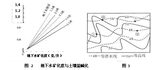 3. 若地下水矿化度为5克/升,则 图3中土壤含盐量大于等于0.8% 的点有