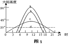 图1中四条曲线分别表示A、B、C、D四地某日(同一天)太阳高度的变化,其中一个地区属于中国领土。据此判断1-2题。