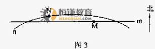 假设从空中R点看到地表的纬线m和晨昏线n如图3所示。R点在地表的垂直投影为S.据此完成9-11题。
