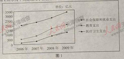 4.图1所示为中央财政用于社会保障和就业、教育、医疗卫生的支出状况。