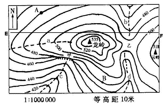 (8)画出沿EF线的地形剖面图。(5分)