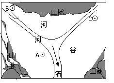(1)甲图中A、B、C三个聚落,哪个更有可能发展成为城市?为什么?(4分)