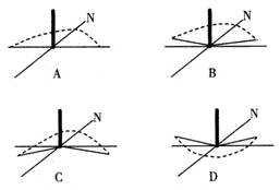 2.下列四图中,能正确表示该日天安门广场旗杆杆影影端运行轨迹(虚线)的是