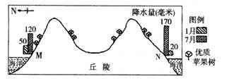 B. M地位于来自海洋的冬季风迎风坡,冬季降水多于N地