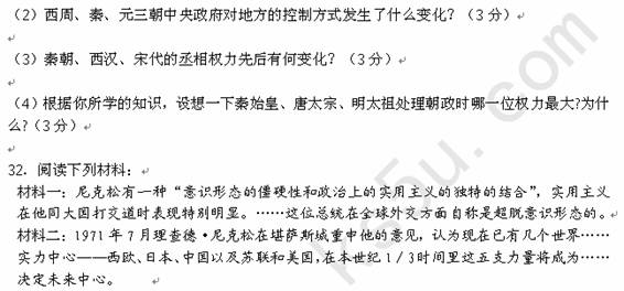 (1)根据材料和所学知识,请归纳出有关加强中央集权的焦点问题。(4分)