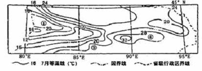 下图表示我国某地区7月份平均气温的分布,读图完成4~5题。