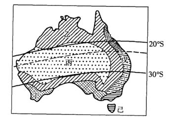 下图为“澳大利亚自然带分布图”。读图完成10-11题。