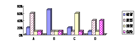 8.家庭的投资理财应根据不同的经济态势,采取不同的选择。当银行储蓄利率下降、企业经济效益大幅下滑时,下图中最适宜的家庭投资理财结构是( )
