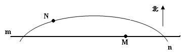 假设从空中R点看到地表的纬线m和晨昏线n如下图所示。