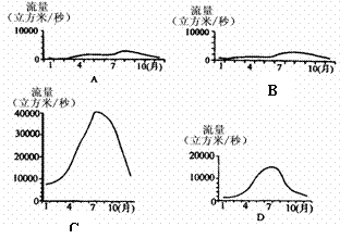 这四条河流的水文特征,判断A、B、C、D四幅图哪条河流代表黄河 __________ 。