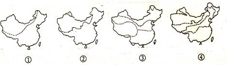 39、下面四幅图分别是对我国某项地理内容的划分,虚线是分界线,①②③④所代表的划分项目最有可能的是