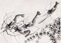 对于右图《虾》(齐白石)和《春雨江南》(李 可染)两幅作品,说法不正确的是
