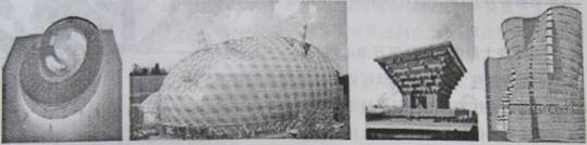 5.2010年上海世博会的许多展馆设计体现了参展国的地域文化。如①中国馆:东方之冠--城市,让生活更美好;②丹麦馆:梦想城市--小美人鱼、环形轨道;③西班牙馆:柳条篮子--斗牛王国;④日本馆:太空堡垒--节能环保。结合上述特点,按下图排列顺序,找出正确的排列序号 ( )