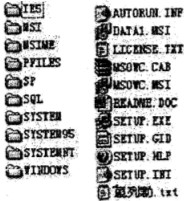 64.王飞想在电脑上安装OffiCe软件。右图是他打开OffiCe2000安装盘所见到的内容,要