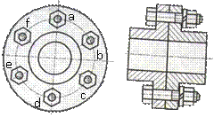 28.如图所示,采用六个螺母与螺钉连接两个零件,