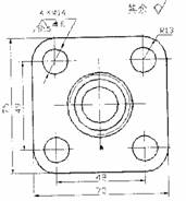 周围分布四个小孔的圆角正方形零件。图中4×ф14