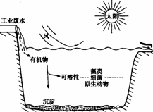 (5).工业污水和生活污水是环境污染的重要来源,污水处理是环境保护的重要措施,氧化塘法就是一种利用自然生态系统净化污水的方法。氧化塘是一个大而浅(水深约2m)的池塘,下图表示其生物群落和非生物的物质环境。