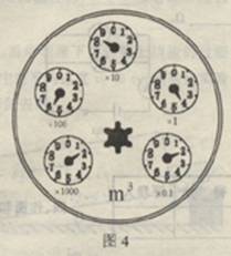 图4为小明家本月自来水表的示意图。那么他家本月水表的示数为____________。