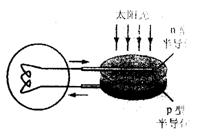 如图所示是表示光电池工作原理的示意图:当太阳光照射到组成光电池的叠在一起的两片不同的半导体的表面时,将会产生光电效应,从而使电路中产生电流,从能量转化的角度看,光电池是将______能转化为_______能的装置.