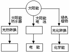 26、(2005镇江市) 如图所示是利用太阳能的三种方式的示意图.请在空白方框内填上相关的物理名称.
