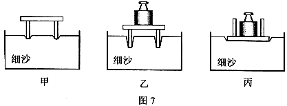 17.在探究“压力的作用效果跟什么因素有关”的实验中,某同学做了如图7所示的实验. 比较实验的甲、乙两图可得压力的作用效果与 有关:比较乙、丙两图可得压力的作用效果与 有关