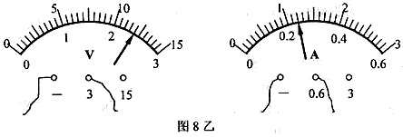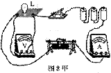 21.用图8甲所示的电路测量小灯泡L的电阻.闭合开关后,电压表和电流表的示数如图 8乙所示.流过小灯泡的电流为 A,小灯泡的电阻为 Ω