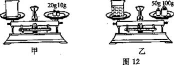 (2)他按图12中甲、乙、丙的步骤顺序进行实验,依图中数据可知:牛奶和烧杯的总质量为 g,牛奶的密度为 g/cm3。