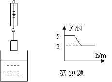 19.如图,金属块挂在弹簧测力计下,将金属块慢慢放入水中,弹簧测力计的示数逐渐减小,右图是弹簧测力计示数与金属块下降距离的图像,由图可知,金属块完全浸没在水中时受到的浮力是________N,金属块的密度是________kg/m3。