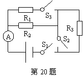 20.如图,电源电压保持不变,电阻R1=R2=R3=10Ω。要使电路变为R1、R2并联,应闭合开关________,此时电流表的示数为I1;要使R2、R3串联,应闭合开关________,此时电流表的示数为I2;则I1:I2=________。