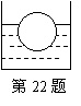 22.请在图中画出重6N的均匀木球漂浮时所受浮力的图示。