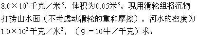 62、如图19所示,在深为15米的河里有一沉物,沉物的密度为