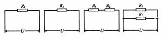 5. 图3示的四个电路中,电源电压U相同,R1<R2,电路消耗的总功率由大到小的顺序是