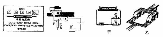 12.图7是一种接在家庭电路里的电能表,该电能表允许接的最大功率为________。若安装时此电能表的示数为零,则从安装电能表到现在为止,用电器已消耗了__________电能,电表已转了__________圈。若测得转盘在6min内转了30圈,则所接用电器总功率为_________。