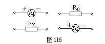 (2)若将上题中两只安培表换成伏特表1、伏特表2,其它器材不变,根据图116画出测定未知电阻Rx阻值大小的电路图,若接通电路后伏特表1的示数为U1、伏特表2的示数为U2,则Rx=______。