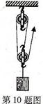 3、(08辽宁省十二市)如图10所示,某人站在高处用100N的拉力把重240N的物体提高1m,则人克服重力所做的有用功为_______J,总功为______________J,该滑轮组的机械效率为_______。