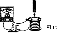 17.图12所示,开关闭合,将一根条形磁铁插入线圈时,与之相连的灵敏电流计的指针