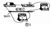 7.图5是用铅笔芯制成的滑动变阻器,通过移动左端的铜环来改变接入铅笔芯的长度。
