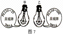 9.甲、乙两只普通照明灯泡的铭牌如图7所示,下列说法中正确的是( )