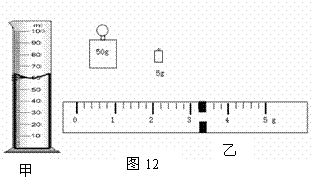 (3)把玻璃杯和剩余的花生油放在天平左盘上称量,当天平重新平衡时,所用砝码和游砝的位置如图12乙所示,读出玻璃杯和剩余油的质量;