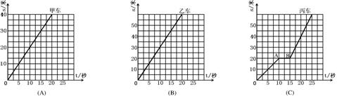 (2)观察分析甲、乙、丙车运动图像,在前5s内____车运动的较快,它的速度是____m/s。