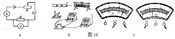 如图16(c)所示,则电流表示数为 A,电压表的示数为 V,此时定值电阻为 Ω。
