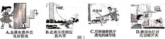 4.如图1所示的四种情景中,不符合安全用电原则的是 ( )