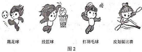6.图2中的几幅图片展示的是福娃小运动健将在进行奥运比赛的场面。下面是小方对各比