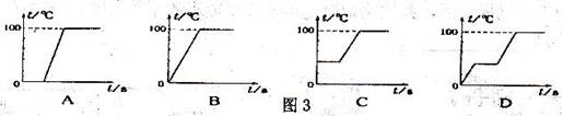 8.在一个标准大气压下,对0℃的冰持续加热直到沸腾一段时间,图3中四个温度随时间