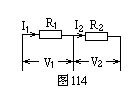 99.如图114所示电路,已知R1=2欧姆,R2=4欧姆,U1=2伏特,求(1)通过R1的电流强度I1;(2)R2两端的电压U2。