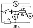 如图4所示,电源电压不变,闭合开关S后,滑动变阻器滑片自a向b移动的过程中