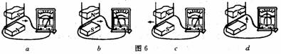 14.a、b为两个条形磁铁的两个磁极,根据图8所示的磁感线方向,可以判断a为________,b为______,小磁针上端为_____________。