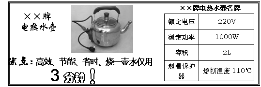 30、暑假里的一天,李红去商店购买电热水壶,售货员给他了一份推销××牌电热水壶的宣传广告,其内容如下: