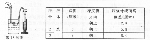 18.小明在学习液体压强时,用压强计做了如下实验,获得下表数据: