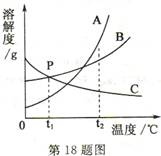 B .P点表示t1℃时B、C两物质的溶解度大小相等